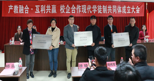 会上,校企共同签订了现代学徒制培养协议,学校分别授予了三家企业“校企协同培养应用性人才基地”牌。杭叉集团股份有限公司授予了智能技术系电子信息工程技术专业“现代学徒制杭叉智能制造班”牌,杭州迅蚁网络科技有限公司授予了智能技术系无人机应用技术专业“现代学徒制迅蚁科技班”牌,浙江国自机器人技术股份有限公司授予了智能技术系工业机器人技术“现代学徒制国自机器人班”牌,同时,学校和杭州迅蚁网络科技有限公司合作成立了“空中智慧物流无人机创新协同中心”。