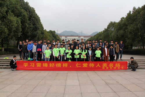 今年的3月,正值毛泽东同志“向雷锋同志学习”题词发表52周年。为大力弘扬雷锋精神,坚定为人民服务的信仰,普及志愿服务理念,进一步提升当代大学生思想道德素质,推动学雷锋活动深入持续开展。3月19日中午,系团总支学生会青协部的组织、带领下,我系学生会干部及干事于校正门口集合,利用中午休息时间开展学雷锋志愿活动,对校园卫生死角进行清扫。