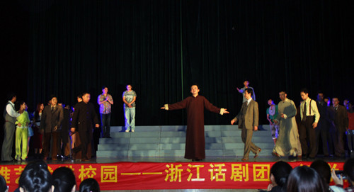 11月5日晚6点,浙江话剧团新创曲目《谁主沉浮》在我院体育馆隆重上演,我院1000多名师生一起观看了此次演出。