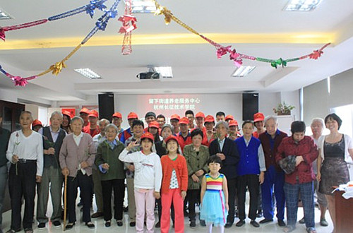 建工系学生会青协干事与老人们合影建工系学生会青协干事与老人们合影