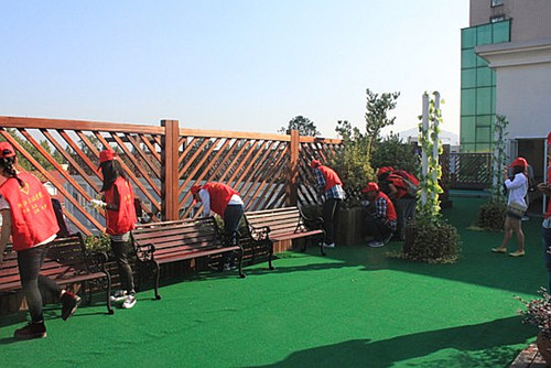 建工系青协干事为留下街道养老服务中心平台除草建工系青协干事为留下街道养老服务中心平台除草