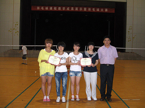 羽毛球课程自成为院级重点课程以来,课程组全体教师深受鼓舞,以提高教学质量为中心,先后进行了一系列教学改革:深化课程体系和教学内容改革,规范教学过程,统一教学大纲,组织相互听课和教学经验交流,进行教材、课件、网站等多种形式的教学资源建设等以提高教学质量。 羽毛球技能大赛作为课程教学成果展示的重要组成部分,比赛设男女双打、男女单打四项,分别取前八名,在前期大力宣传下,不仅选修羽毛球课程的同学积极报名,而且吸引了许多不同年级不同课程的羽毛球爱好者参与,先后有316人次报名参加比赛。