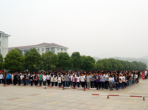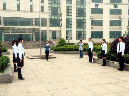在初夏的早晨,同学们怀着崇高的敬意参加升旗仪式。七点整,七名国旗手身著笔挺的军装,迈着坚定地步伐,“出旗、立正、敬礼、升旗”国旗手把国旗向空中扬起。伴随着国旗缓缓上升,众人的视线也定格在国旗升旗的那一刻。全体同学在庄严肃穆的气氛中共同回忆历史,缅怀先辈。全体同学高昂的唱响义勇军进行曲,爱国精神在校园内回荡不绝。学生代表国旗下讲话。团委书记陶元发表演讲,她告诫同学们要传承历史,学习五四精神。并对同学们平时对爱国情意淡薄的行为做出批评。