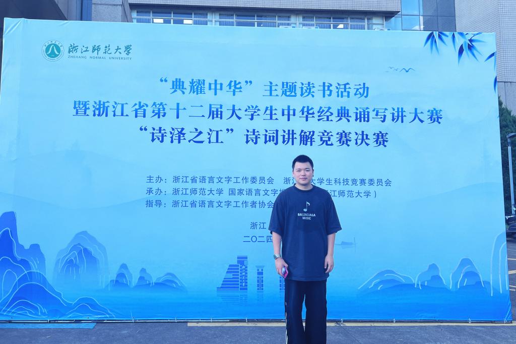 近日,浙江省第十二届大学生中华经典诵写讲大赛“诗泽之江”诗词讲解竞赛决赛落下帷幕,我校人文与教育学院龚昱蓬同学(指导老师:李娜、张宝)荣获二等奖。