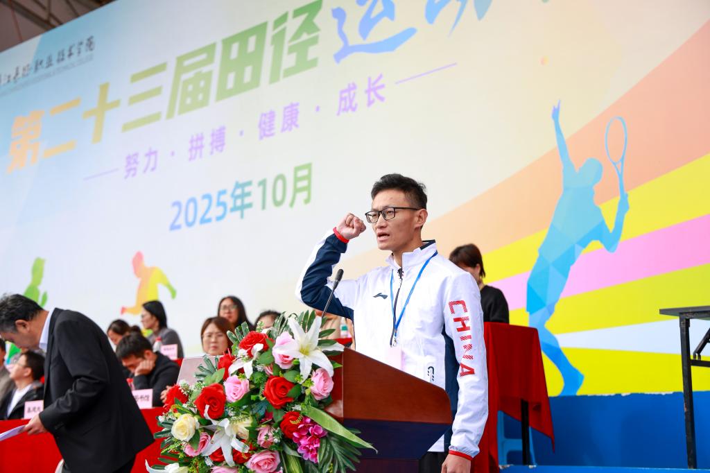 副校长杜宝山致开幕词。他代表学校,对运动会的顺利召开表示热烈祝贺。他表示,体育运动不仅能强健学生体魄,更能培育爱国主义、集体主义精神,实现“以体育智、以体育心”的育人目标。希望全体运动员尊重对手、文明参赛,赛出水平、赛出风格。