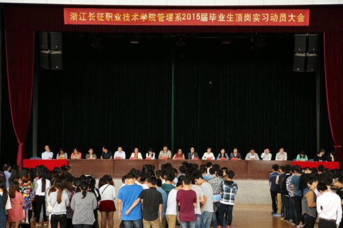 管理系孙金动书记、刘卫星主任、范平副主任和工商管理专业、人力资源管理专业、旅游管理、酒店管理4个专业的所有专职教师、班主任及4个专业三百多名即将参加毕业顶岗实习的大三学生参加了本次大会。刘主任发表了动员讲话,强调毕业实习的重要性。范主任介绍毕业实习的内容及方式、实习期间的管理规定等,宣读了《浙江长征职业技术学院毕业生校外实习管理规定》。孙书记强调在实习期间的各项安全事项,注意甄别实习就业信息。