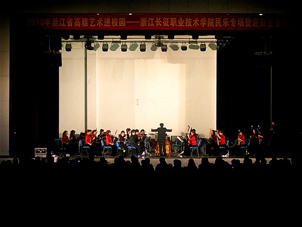 10月18日18:30,高雅艺术进校园——浙江长征职业技术学院民乐专场暨迎新生音乐会在学院体院馆隆重举行。来自浙江歌舞剧院所属的民族乐团用精湛的表演为我院师生奉献了一场音乐饕餮大餐。浙江长征职业技术学院副院长贺旭辉教授及全院1600余名师生观看了这场精彩的表演。