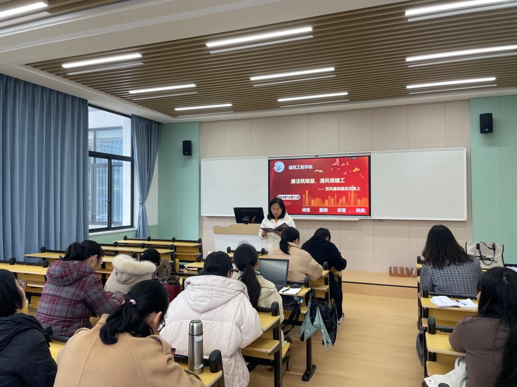 为深入贯彻落实党风廉政建设工作要求,进一步巩固深化党纪学习教育成果,强化和改进党员干部纪律作风建设,推动全面从严治党向纵深发展、向基层延伸。近日,建筑工程学院召开党风廉政建设会议。会议由学院党总支书记陈敏洁主持,学院副院长杨琼、全体教职工参会。
