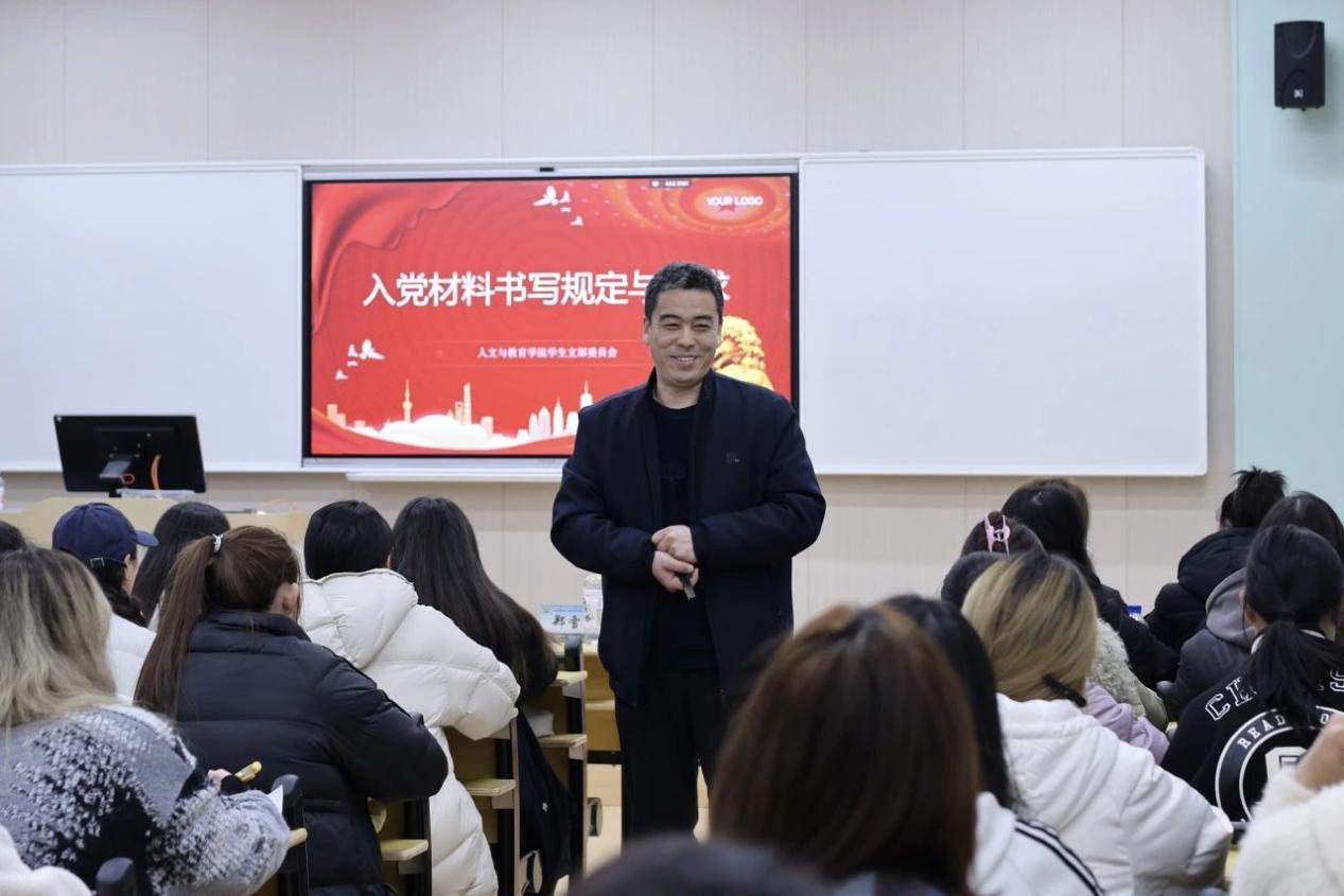 近日,人文与教育学院学生党支部第七期入党积极分子培训班在学校一号教学楼1402教室顺利开展。此次培训课程内容丰富、形式多样,聚焦提升入党积极分子思想政治素养,夯实他们坚定理想信念,厚植红色根基。