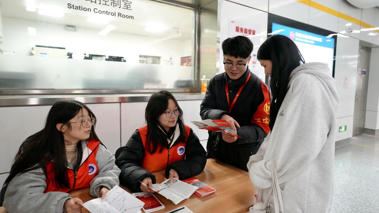 志愿者们为乘客提供购票指引,协助疏导乘车秩序,主动帮扶老弱病残孕,积极示范文明乘梯,构建一张全方位、立体化的服务网络,使便捷出行与安全知识紧密相连,让每一位乘客都能感受到贴心的关怀。志愿者们耐心示范乘车礼仪,全力维护站台秩序。